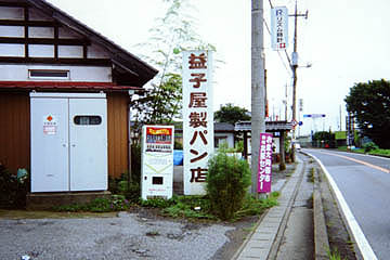 「益子屋製パン店」さんの看板と競い合うようにして立っています。