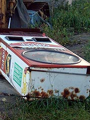 前面の枠が赤で、丸窓。サンデンかサンヨーかだと思うんですが、機種不明。
