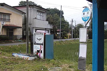 細くてゆるやかな道がバス専用道路(戦前の旧国鉄白棚線)です。地域の公民館の前がバス停です。(つばめ92号さん)