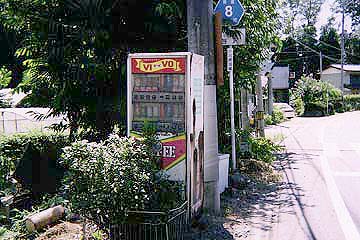 Y字路の中州に佇む二段VIVO。胸に輝くラッキー7。
