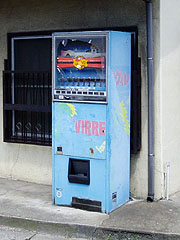この国道は比較的交通量が多く自販機の近くには小・中学校や高校などがあります。まるで交通安全の