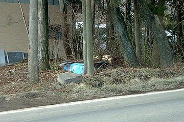 No.360より1Km程東側、国道286号線沿いの林の中にベルミーの自販機と一緒に倒れています。