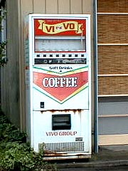 赤と黄色の自販機。機種は判りません。8セレ、8ボタン。
