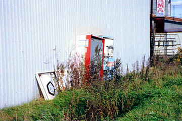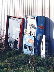 「何故、こんなに破壊されてしまったのか?地元のヤンキーの仕業か。それとも、この自販機がよりかかっている