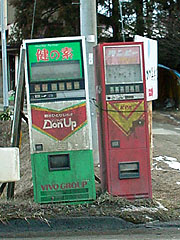 ドロはねにまみれた「健の素」。となりの自動販売機はKPKカンピー。