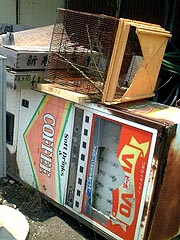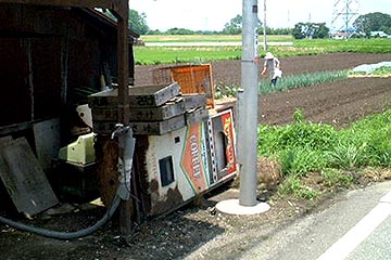 新巻鮭の箱や鳥カゴが乗っています。左に倒れているので型番は確認できないでしょう。