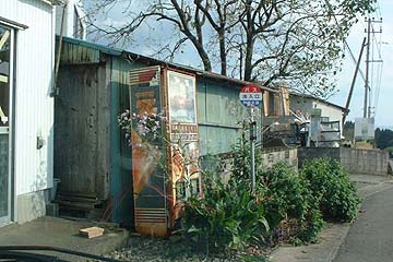 この自販機、商品の取り出し口が2つ付いてました。自販機のすぐ横にはローカルのバス停もあり、