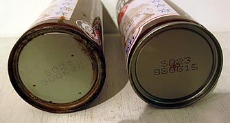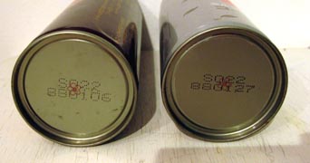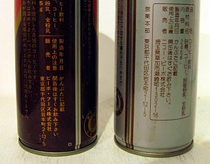 缶クエストVさんに貴重なVIVO缶を見せて頂きました。見せて頂いた缶の製造年月日から、時代の変わり目を読みとることができました。(2010.6.16) 1.ビーボ・フーズ 〜 ニュー・ビーボ Vコーヒーはニュービーボになってデザインを替えますが、 製造年月日は、 ・左のビーボ・フーズは 880106 ・右のニュー・ビーボは 880127 おそらくニュー・ビーボは1988年の1月6日〜27日の間に設立されたと考えることができます。 なお、ビーボ・フーズの所在地は東京都千代田区岩本町2−12−5で、 ニュービーボの所在地は、埼玉県草加市瀬崎町1302−16 となっています。 ![]() 2.ニュー・ビーボ 〜 エフ・ヴィ・キャンズショップ 左はビーボ・フーズ、右はニュー・ビーボに見えますが、左はエフ・ヴィ・キャンズショップ時代のマイルドコーヒーです。 ロゴからNewが取れてしまっているので見た目にはビーボ・フーズのリボン字にしか見えません。 製造年月日は、 ・左のエフ・ヴィ・キャンズショップは 900626 ・右のニュー・ビーボは 880315 エフ・ヴィ・キャンズショップでの販売が88年3月15日から90年6月26日の間に行われるようになったことを示しています。 こちらもビーボの歴史を裏付けるものです。 缶クエストVさん、貴重な資料をありがとうございました。 |